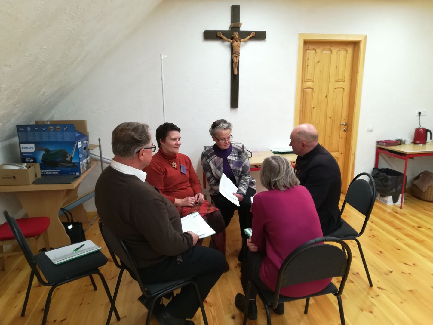 Prieš pat Visų šventųjų bei Vėlinių minėjimą, praėjusį šeštadienį (spalio 27 d.), Krikščioniškojo gyvenimo bendruomenės Anykščių skyriaus nariai sulaukė tam pačiam sambūriui priklausančių svečių iš Pasvalio. Susitikimą pradėjome Eucharistijos šventimu Anykščių šv. Mato bažnyčioje, kur kartu su klebonu kun. Petru Baniuliu šv. Mišias taip pat aukojo mūsų parapijoje nemaža metų vikaravęs, o šiuo metu Pasvalio šv. Jono Krikštytojo bažnyčioje besidarbuojantis kun. Nerijus Papirtis. Pasistiprinę Gyvąja duona, susitikimą tęsėme Parapijos namuose, kur, išklausę diakono Viliaus Valionio pranešimo apie Šventojo Tėvo vizito į Lietuvą reikšmę, pasidalinome į keletą grupelių. Jose dalinomės mintimis apie šio išskirtinio istorinio įvykio prasmę savo gyvenimuose. Dažnas pasisakiusysis kalbėjo apie jam įstrigusį popiežiaus raginimą atsigręžti į savo tautos praeitį bei subrandintą ryžtą permąstyti savo gyvenimą, ieškant būdų dvasiškai tobulėti. Kunigo vikaro žodžiais tariant: „Šventojo Tėvo vizito metu dažnas išgyvenome dvasinį pakilimą, subrandinome pasiryžimą keistis. Dabar turime savęs klausti: ‚O ką darysiu su šiuo pasiryžimu toliau? Ar jam bus lemta būti įgyvendintam? O gal jis taip ir išnyks nepalikęs ryškesnio pėdsako mano gyvenime?‘“ Tose pačiose grupelėse svarstėme apie bendruomenės reikšmę kiekvieno krikščionio „šventėjimo kelyje“, kokią paramą gauname bei su kokiomis kliūtims susiduriame. Neretas sutiko, jog dvasiniam tobulėjimui bendruomenė tiesiog būtina, o kunigo vikaro teigimu: „Tik santykyje su kitu atsiskleidžia tikrosios mano asmeninės savybės. Kol esu vienas, manau, jog esu beveik tobulas krikščionis, tačiau susidūręs su kitu, pastebiu, kiek daug jo trūkumų man nevalingai kelia pasipiktinimą. Esame lyg du ežiukai, kurie turi laikytis saugaus atstumo arba žmonių santykiuose – pagarbos, kad mūsų „spygliai“ vienas kito nesužeistų.“ Be dvasinių pokalbių stiprinomės Česalvos su meile virtais pietumis – gardžiausiais pietumis pasaulyje! – bei vieni kitų atsineštais užkandžiais. Svečiams taip pat aprodėme bažnyčioje įrengtą apžvalgos aikštelę, Lajų taką, A. Vienuolio-Žukausko memorialinį muziejų, A. Baranausko klėtelę. Šilto bendravimo ir puikių įspūdžių kupina diena netruko prabėgti. Svečius išlydėjome namo, tvirtai pasiryžę, pasak kun. Nerijaus, „bendruomenėje sukauptą patirtį barstyti už parapijos ribų, o gal kitų barstomais dalykais pasipildyti“ – bet kuriuo atveju, užsimezgusią bendrystę puoselėti toliau. Telaimina šį mūsų pasiryžimą Viešpats!
